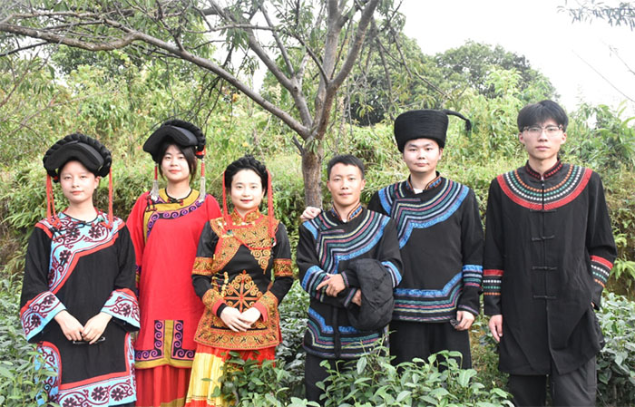 圖5團隊成員體驗彝族文化,深入茶園并合影留念