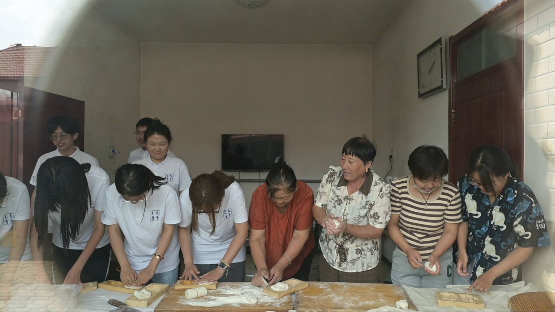 在村民的熱情邀請下,隊員們到一戶村民家中體驗面花制作過程。借著一雙巧手、一個模具,一塊平平無奇的面團就能蛻變成精致生動的面花。隨后,隊員們到達仙莊黨群服務中心,村干部同隊員們分享了總書記考察旱堿地麥田的故事,并充滿喜悅與自豪地表示:“我們的旱堿地里長出了'金粒子'。”完成實踐基地掛牌儀式后,實踐隊來到黃驊面花非遺工坊參觀,展館內所展示的顆顆飽滿的麥粒更是旱堿地麥田助力發展鄉村發展新圖景的符號。
