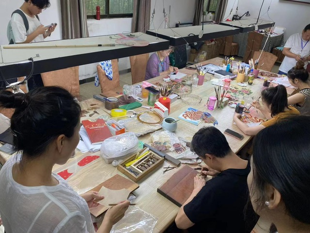 隨后,在薛宏權先生的指導下,隊員們親自體驗了制作皮影的過程。他耐心地向隊員們介紹了從選材到雕刻、上色再到操縱等每一個環節。薛宏權先生告訴他們,在制作皮影時需要選擇優質的牛羊皮,經過多道工序的處理后,才能保證皮影的質量。他還特別強調了刻畫技巧的重要性,只有通過精細的刀法和細膩的表現力,才能塑造出栩栩如生的形象。