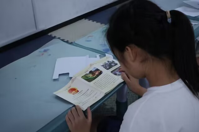 圖為實踐地學(xué)生閱讀推普宣傳手冊。李晶晶攝