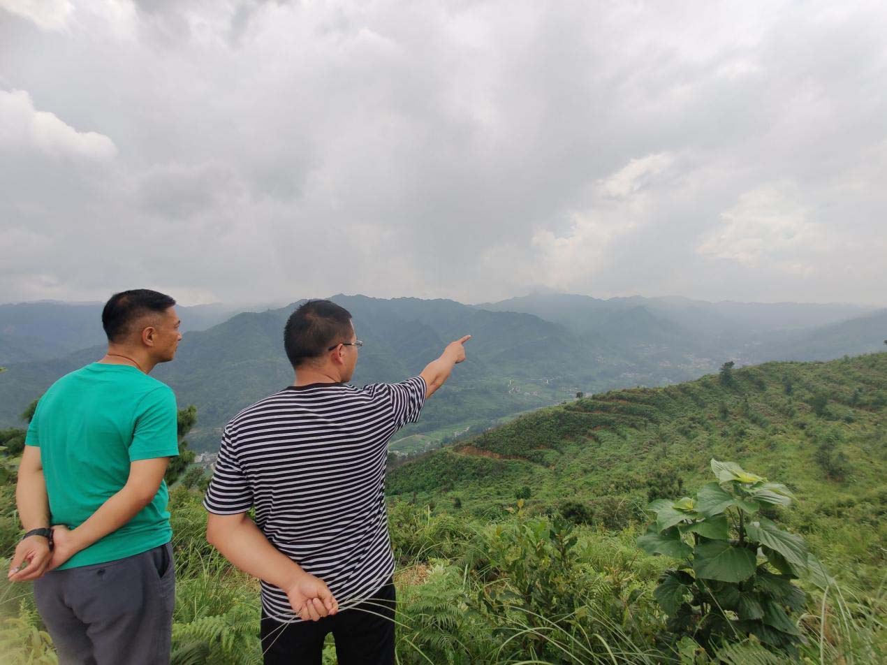圖 1 張鈺和謝勇在共同探討茶園規劃(左 張鈺 右謝勇)