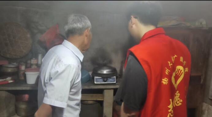 上面兩圖為團隊成員趙正麗和丁學成幫助老人做菜
