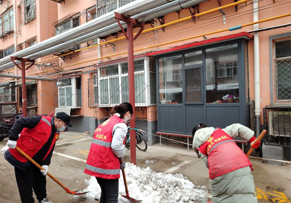 圖 2實踐隊清掃軍學社區樓院內積雪