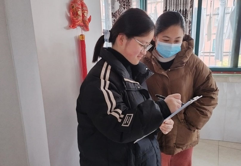 團(tuán)隊(duì)成員在鄰居家采訪(fǎng)有關(guān)購(gòu)買(mǎi)老人醫(yī)療保險(xiǎn)問(wèn)題