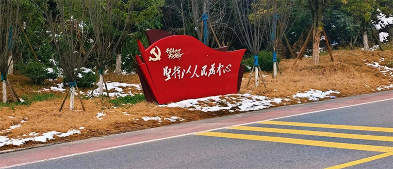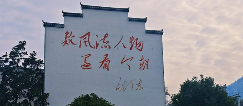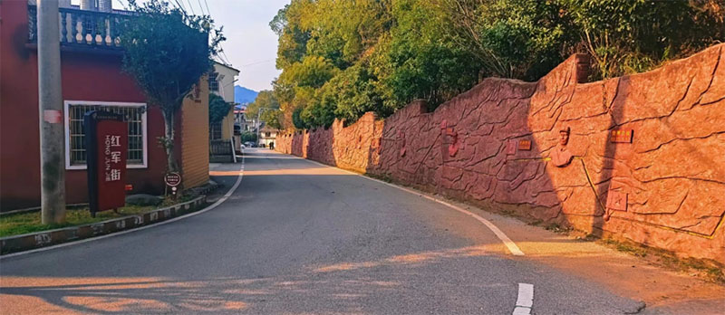 再比如市鎮里隨處可見的紅色建筑。居民的建筑墻、道路草坪、環城公路的兩旁,甚至是建筑公司的廣告標語,都有紅色文化的蹤跡。