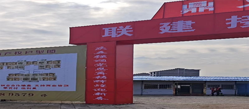 (圖為文家市軍旗廣場附近的建筑公司標語)