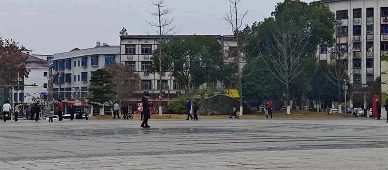 (圖為文家市秋收廣場,居民正在廣場游玩散步)