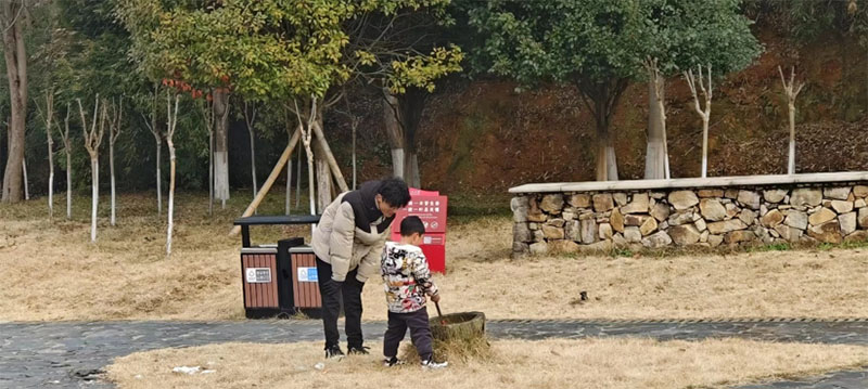 比如說當地人最喜歡的休閑去處——秋收廣場。清晨,早在小隊成員啟程開始一日的研學時,老人們就已結伴來到廣場散步、聊天;孩子們則成群結伴,在廣場上快樂地玩耍;午后人較多,大人們帶著孩子來到草坪上玩耍,或是帶他們來園區參觀;到了晚上,年輕人們踩著燈光打羽毛球,一家人相約在廣場上散步。也許,對于這里的人來說,那些口口相傳的歷史不是遙遠的傳說,而是祖輩在這片土地上真實發生過的事。