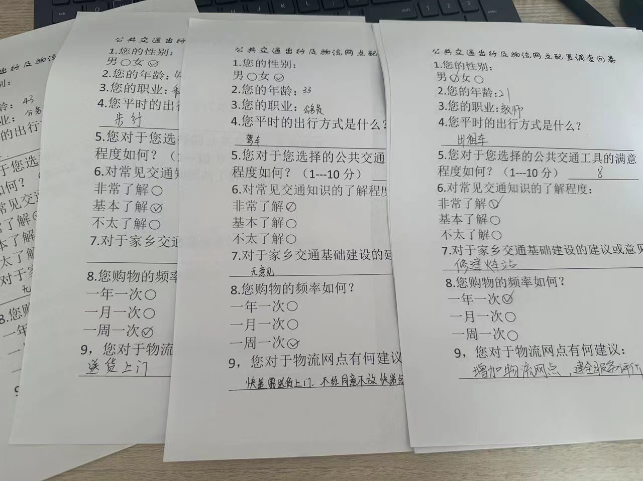 在掌握了一定的理論知識之后,我明白“實踐才是檢驗真理的唯一標(biāo)準(zhǔn)”,因此我設(shè)置了線下調(diào)查問卷環(huán)節(jié),前往拜泉縣新時代文明社會實踐中心以及拜泉縣民政局進行宣傳、調(diào)研活動,希望走進居民的真實生活中,真正了解身邊人關(guān)于公共交通工作和物流網(wǎng)點配置的觀點和看法。
