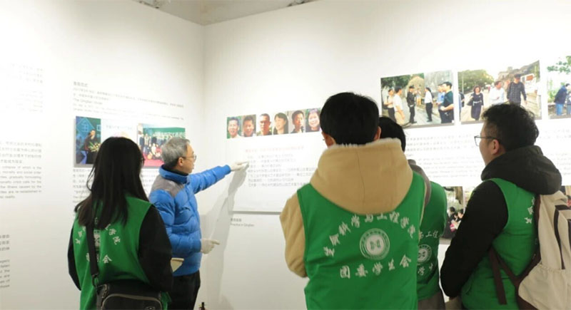 為了更全面地了解青田村的鄉建歷程,學生們還前往了村里的展覽館進行參觀學習。展覽館中所介紹的“青田范式”學術理論,正是青田村八年來鄉村建設、保育工作的概括總結。細細閱讀館內的資料,學生們對于青田村的鄉建實踐有了更進一步的認識與體會。