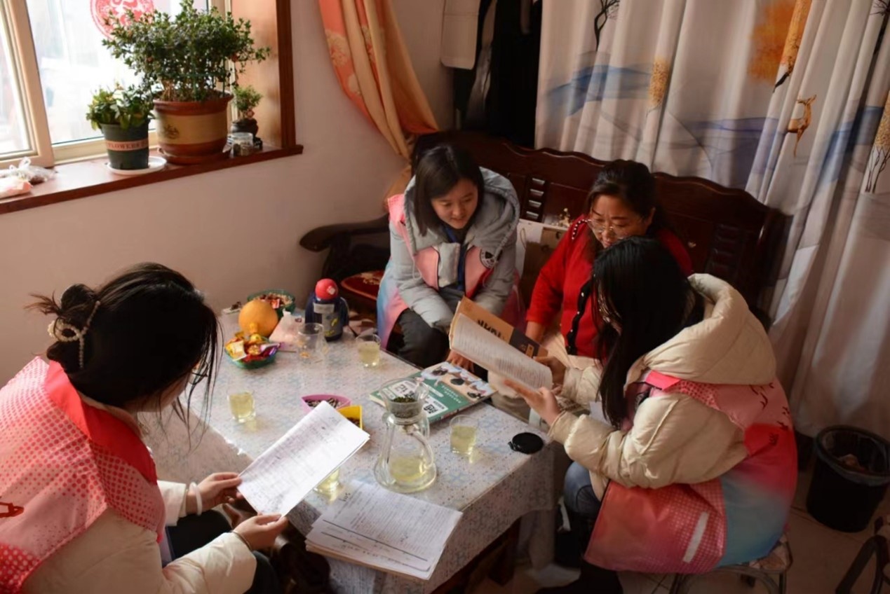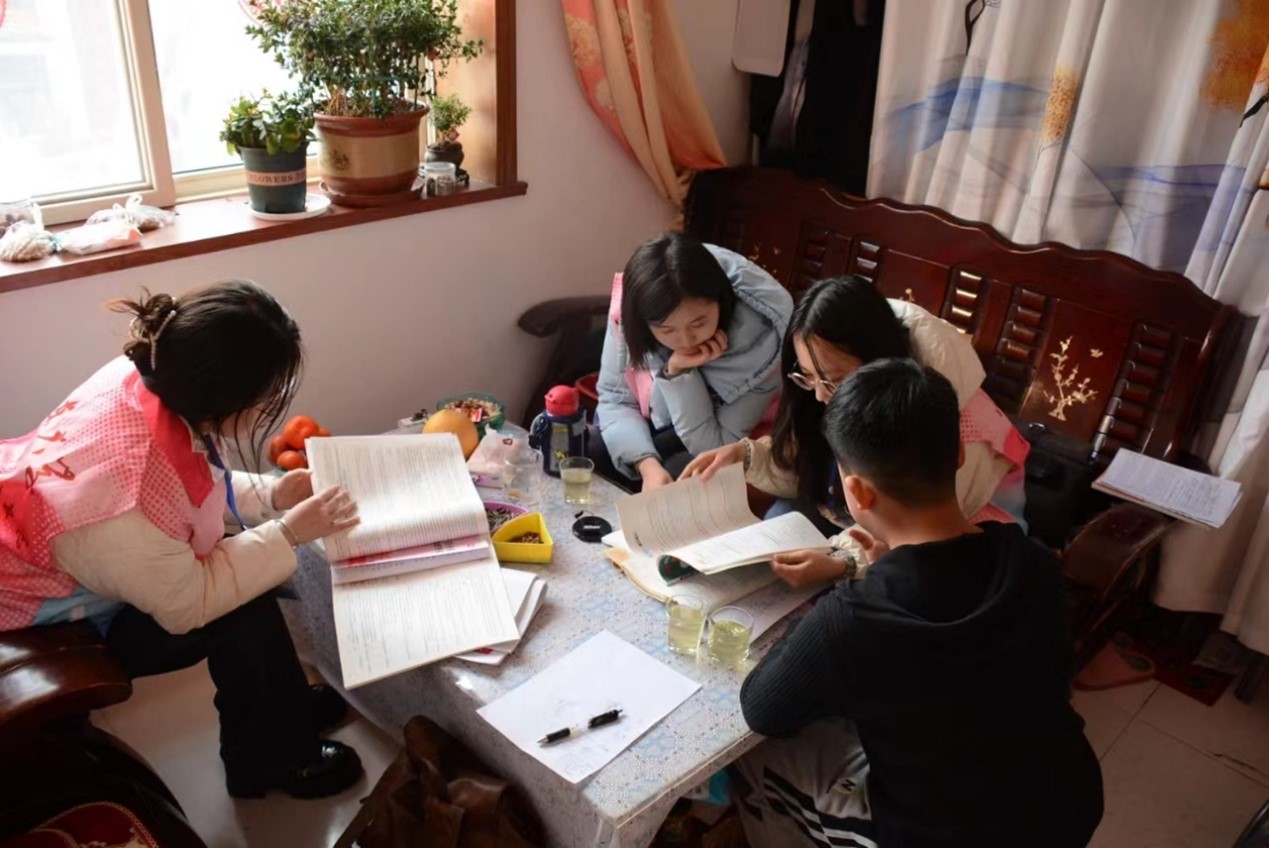 接著志愿者們來到了孩子的家中,在進行自我介紹并將準備好的禮物送給小朋友后,志愿者們參觀和了解了當地希望小屋的具體建設情況,深刻地認識到希望小屋項目對小朋友生活和學習的重要積極影響。隨后實踐團成員悉心詢問小朋友在學習和日常的生活中存在的困難,通過分析小朋友的學習情況,志愿者們針對性地結合自己的學習經歷為小朋友分享經驗。在整個過程中,實踐團成員為小朋友具體講解了語文、英語、數學等科目的學習技巧,輔以寒假作業中的疑難知識點講解。此外,實踐團成員們還與小朋友的家長進行溝通交流,就事先準備好的問題與家長進行了訪談和座談會,對于家長吐露的在日常教育中遇到的問題,實踐團成員在嚴謹分析后提供可能的解決方案,致力于與家長一道,共同促進小朋友的健康成長。