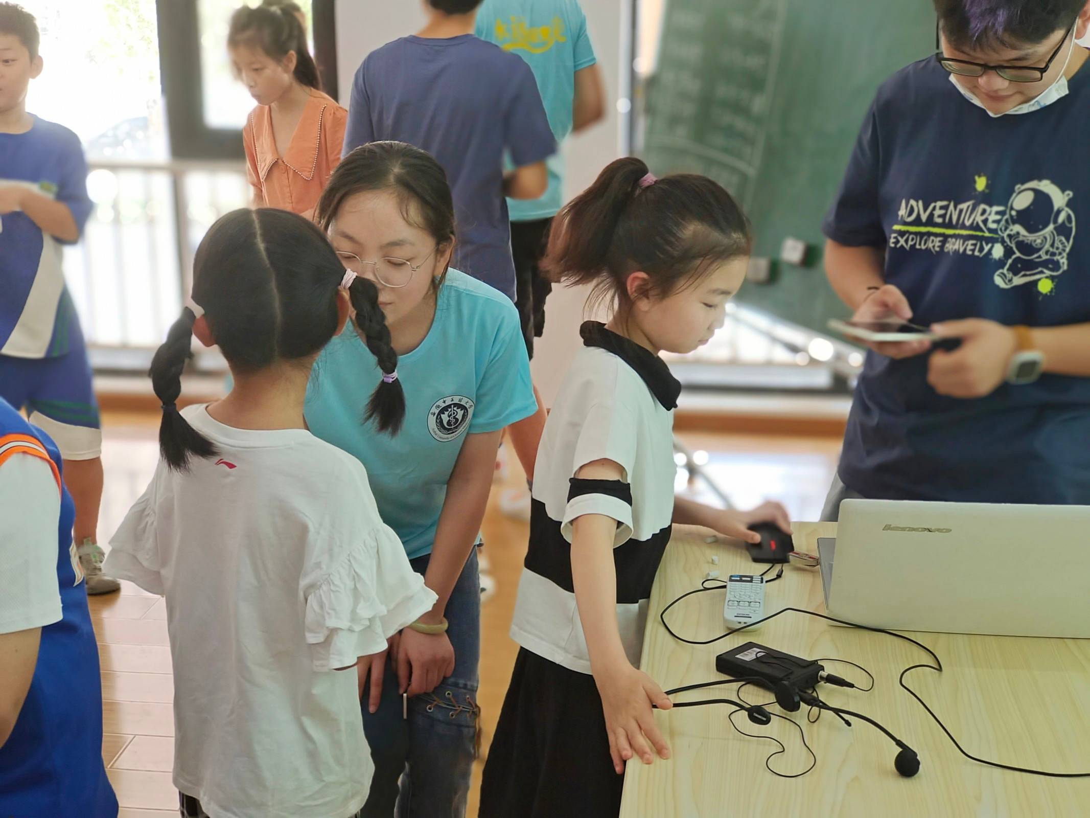 圖為課間時,小朋友主動向實踐隊員詢問是否可以繼續參與“演講與口才”課上的實踐訓練環節,實踐隊員悉心聽取小朋友的答案。