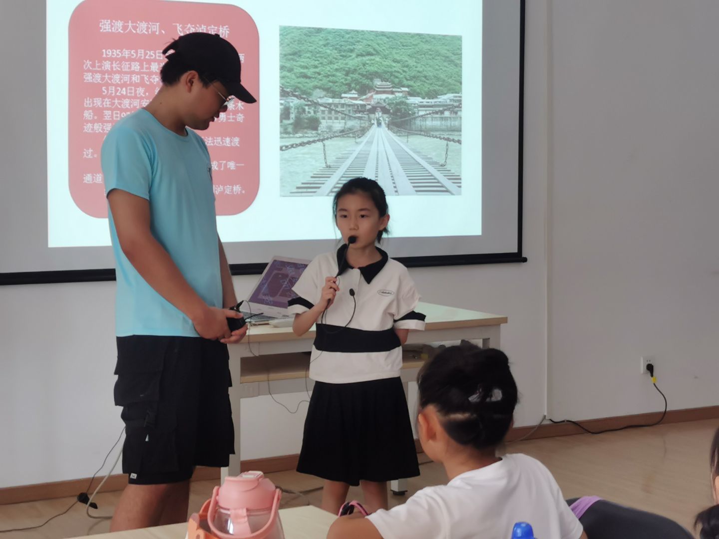 圖為紅色教育課,在實踐隊員準備講述“飛奪瀘定橋”故事時,小朋友主動上臺講述她所了解的“飛奪瀘定橋”,她對歷史的理解值得我們學習。