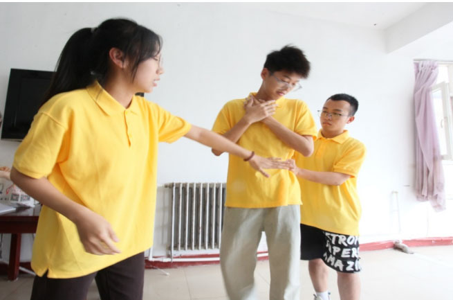 圖為志愿服務隊成員講解并演示海姆利克急救法