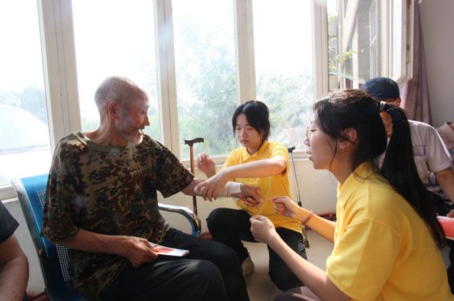 敬老院中老人的健康狀況各異,急救知識可以幫助敬老院的工作人員及時處理老人的突發狀況。在此次活動中,志愿服務隊的成員積極配合,用生動形象的語言講解并現場演示,為老人的健康和安全提供了更加有力的保障。