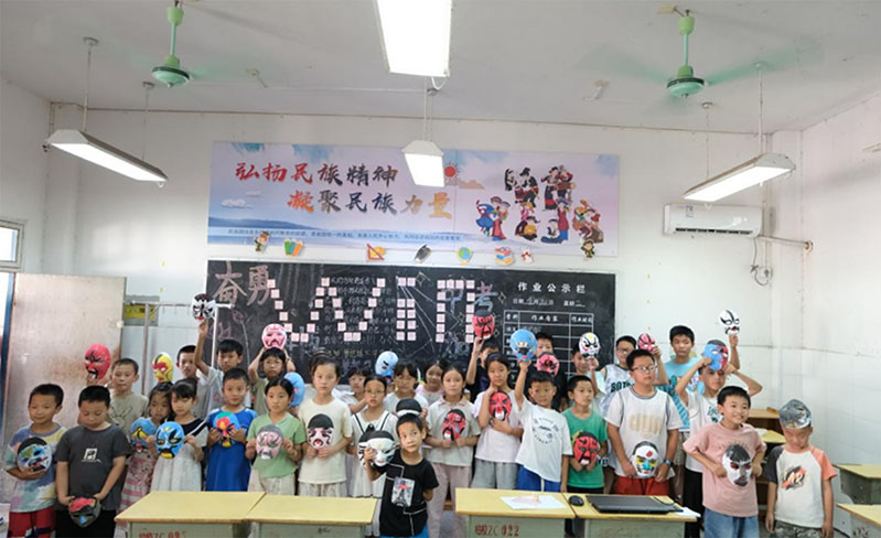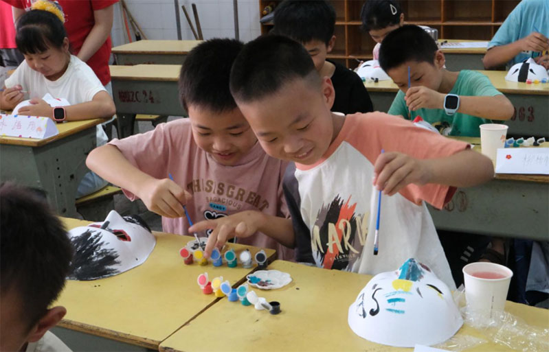 7月6日,浙江師范大學(xué)行知學(xué)院設(shè)計藝術(shù)學(xué)院“藝”心一意“雙百雙進”暑期社會實踐隊為蘭溪市水亭畬族鄉(xiāng)柏園學(xué)校的孩子們開展了畬族紋樣與臉譜繪制的奇妙融合特色體驗課堂。