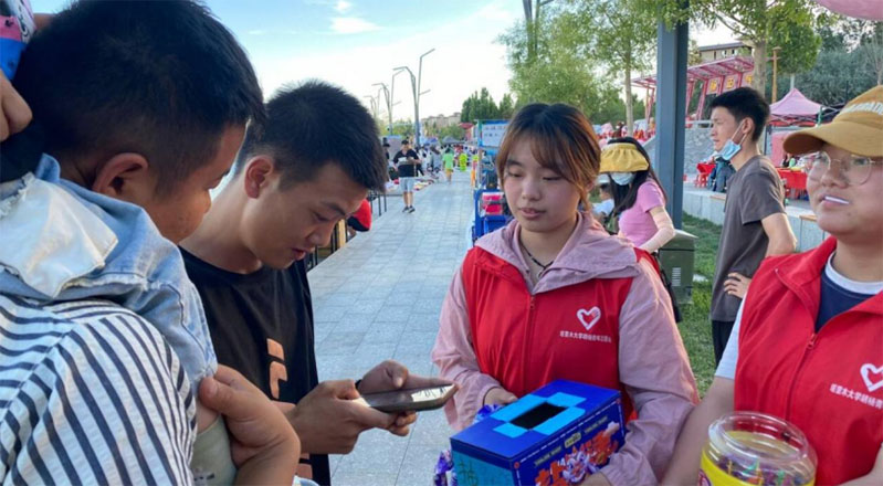 圖為群眾進(jìn)行問卷調(diào)查結(jié)束后的抽獎情形