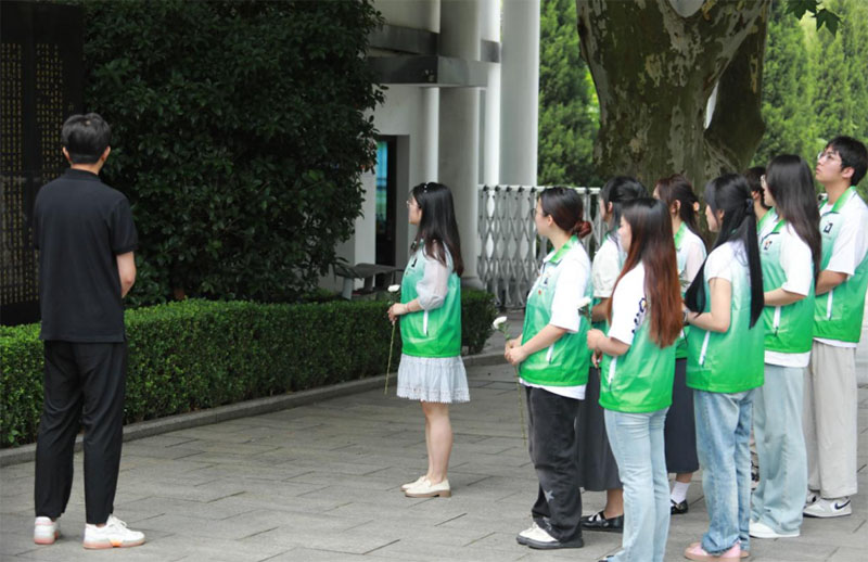 “數碼”說紅跡,桂子山祭掃桂子山烈士陵園位于南京市六合區247省道。這里曾是抗日戰場,地下長眠著英勇無畏的抗日戰士。它始終承擔著記錄歷史、褒揚烈士、傳承精神和教育群眾的重任,現為市級愛國主義教育基地。為引導青年學子傳承紅色基因,賡續紅色血脈,團隊成員們第一站來到桂子山烈士陵園,走過鐫刻著“死難烈士萬歲”六個大字的莊嚴肅穆的烈士紀念碑,凝視銘刻著為祖國、為黨和人民獻出寶貴生命的1108位六合烈士的英烈墻,了解著先烈的英雄事跡,感受著艱苦革命歲月里革命戰士英勇不屈、舍生取義的不朽精神。