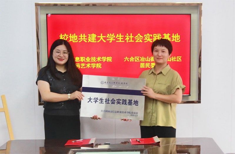 校地共建,共謀雙贏為傳承中華優秀傳統文化,進一步搭建校地合作、資源共通的大學生校外社會實踐教育平臺,7月4日下午,南京信息職業技術學院數碼藝術學院與南京市六合區冶山街道在冶山社區隆重舉行交流座談會暨“南信院大學生社會實踐基地”揭牌儀式。冶山街道黨工委、團工委相關部門同志,數碼藝術學院部分領導老師以及學校“三下鄉”社會實踐團隊學生出席儀式。