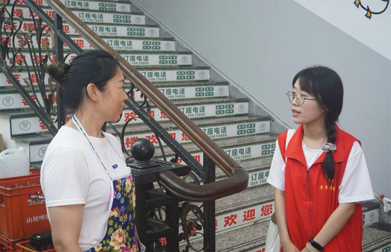 在探尋過程中,團(tuán)隊(duì)成員分為兩個(gè)小組,按照自制的地圖路線逐步探索彭水美食。嘟卷子、郁山三香、豆花蕎面、心肺米粉,各類特色美食層出不窮,團(tuán)隊(duì)成員與店主進(jìn)行交流學(xué)習(xí)并觀看制作展示,親身體驗(yàn)郁山三香制作,感受彭水美食的制作工藝。目前,其獨(dú)特的制作工藝已入列重慶市非遺保護(hù)名錄,走出郁山走向全國(guó),成為了彭水傳統(tǒng)飲食文化的一張靚麗名片,并為當(dāng)?shù)氐穆糜螛I(yè)發(fā)展注入了新的活力。美食不僅承載著彭水豐富的飲食文化和歷史傳承,還承載著屬于彭水人的回憶。