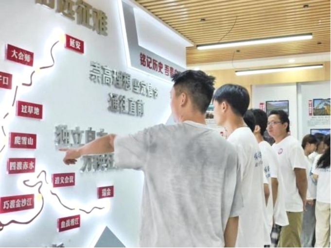 學子紅心向黨,凝聚青春力量下午,實踐隊成員們共赴九江市城門街區紅色研學基地,開展了一場意義非凡的黨建教育和實踐活動。實踐隊成員們首先參觀了展館的“井岡山精神”“偉大長征精神”“延安精神”“西柏坡精神”“改革開放精神”及“抗洪精神”六個篇章。通過指導老師的講解以及在數字科技手段的生動演繹下,一幅幅生動的戰役場景躍然眼前,一個個浴血奮戰的畫面震撼心靈。隊員們仿佛穿越時空,置身于那段艱苦卓絕的長征歲月,深刻感受到了偉大建黨精神的不朽。