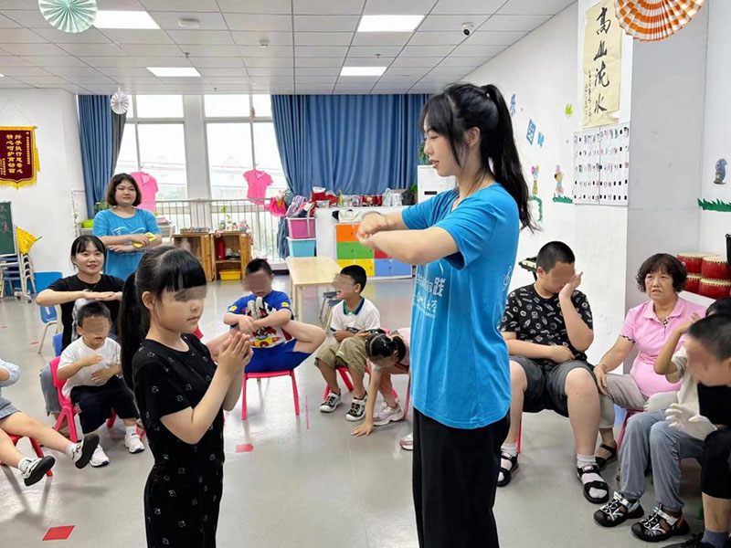完成了一天的學習,“小志愿者和孩子們都不舍結束。在未來幾天里,志愿者老師們仍會以最飽滿的熱情投入心智障礙兒童的教學工作中。