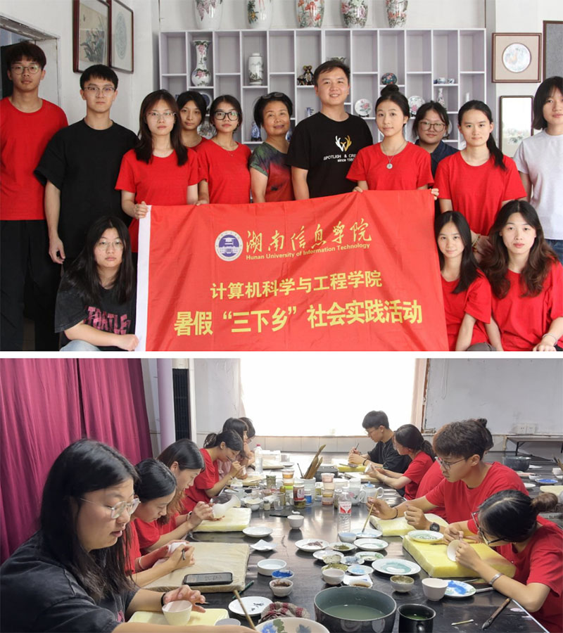 在繪畫制作環(huán)節(jié)中,羅老師悉心指導(dǎo)隊團(tuán)成員們拿起畫筆,蘸取色彩,在潔白無瑕的瓷坯上涂抹上栩栩如生的花朵;從線條的勾勒到色彩的填充,每一筆都凝聚著對美的追求與表達(dá)。釉下五彩工藝具有復(fù)雜性和專業(yè)性,并非是可以一朝一夕達(dá)成的,這更需要團(tuán)員成員們每一步都跟著羅老師的指導(dǎo)行動。團(tuán)隊成員們雖然手法尚顯稚嫩,但帶著那份對釉下五彩工藝的敬重,都投入了滿分的專注,讓每一件作品都充滿了獨特的韻味與生命力。