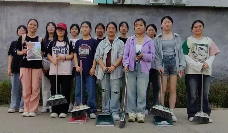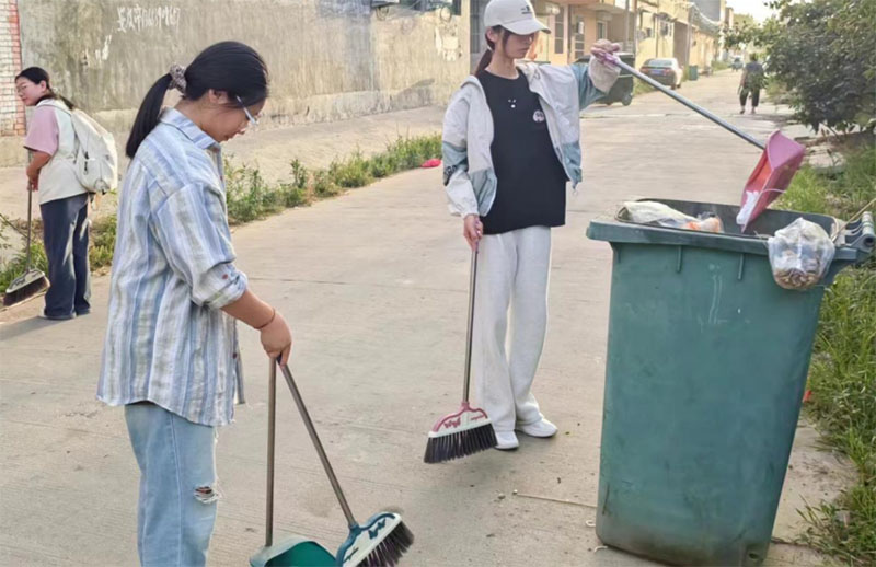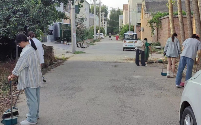 其次,我們這次活動把重點放在了街道的打掃上面,這次的暑期社會實踐我們在常樂村的四條街道開展了此次活動。我們自己準備了掃帚和抽斗,再村子里就開始了我們的實踐活動。我們每天都有不同的小組去打掃街道的衛生。雖然天氣很熱,但是我們每天都有很認真的對待自己的任務。
