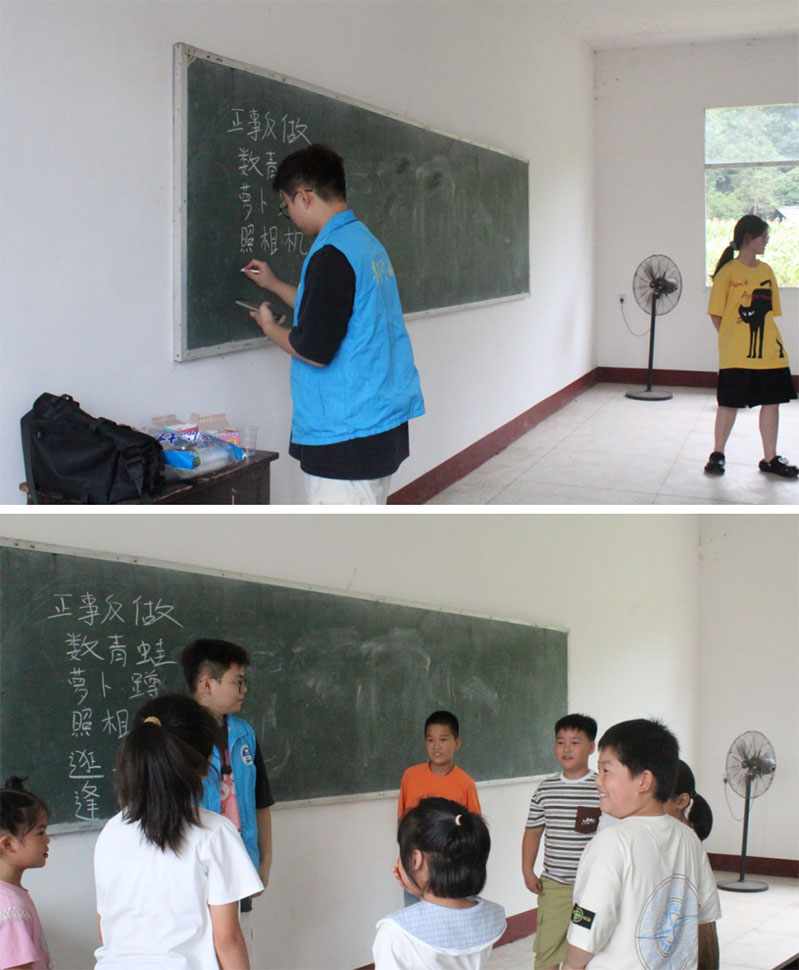 時間轉(zhuǎn)瞬即逝,經(jīng)歷了中午的短暫休息,我們開始了下午的課程。太陽的毒辣在我們的意料之外,但小朋友們卻未因此而打“退堂鼓”。我們分批次對小朋友進行管理,不同人的分管不同的的年級,給小朋友進行課后的作業(yè)輔導(dǎo),他們認真的模樣,實在是令人為之心動,同時他們抓耳撓腮的樣子,也令人深覺有趣。