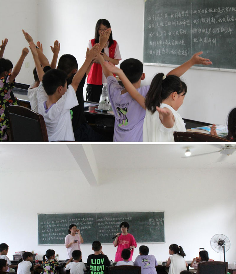我們在昨天的時間上做出了調整,避開了正午的毒辣,讓孩子們能夠享受一個更加舒適的環境。接下來便是我們的一日一節的手勢舞課程。令人喜出望外的是孩子們驚人的記憶力和超高的配合度,他們一次次在實現著“質”的突破,動作標準到位,也能夠慢慢跟上音樂的節奏。老師臉上的笑容是不由自主的流露出來的,那一刻,所有的付出都是值得的。而在后面的音樂課,孩子們激情演唱,也展現出了他們獨有的“生命力”!而這一切對于我們“老師”來說,都是收獲滿滿的“干貨”。