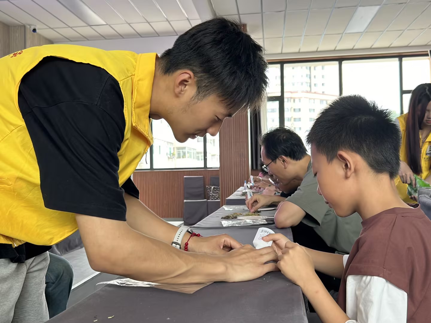 傳承岐黃薪火,弘揚國醫精髓。公益團前往長治市健健托育中心開展志愿服務活動。志愿者為小朋友們介紹了多種生活中常見的中草藥和用途,并帶領小朋友們現場進行中草藥干花書簽的制作和中藥材團扇的繪畫。手工制作讓小朋友們親身接觸并了解了中醫藥的神奇魅力和獨特價值。通過此次實踐,公益團成員將中醫藥文化的“種子”播撒在兒童心間,讓國藥經典得到傳承。