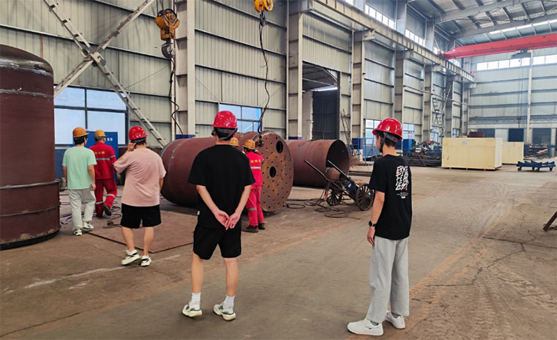 實踐團成員在公司技術人員的帶領下,實踐團成員和相關工作人員佩戴好安全帽進入一線生產車間,參觀了鍋爐的生產流程和工藝,其中包括了鍋爐煅燒、蒸汽設施工作原理、基礎零件打造等等,了解了鍋爐的結構和工作原理。技術人員向實踐團成員詳細介紹了公司的產品特點和市場優勢,并認真地解答了同學們關于鍋爐供暖、環保綠色等方面的問題。通過現場參觀和學習,實踐團成員不僅學到了專業知識,還了解了鍋爐行業的發展現狀和趨勢,為今后的學習和工作打下了堅實的基礎。