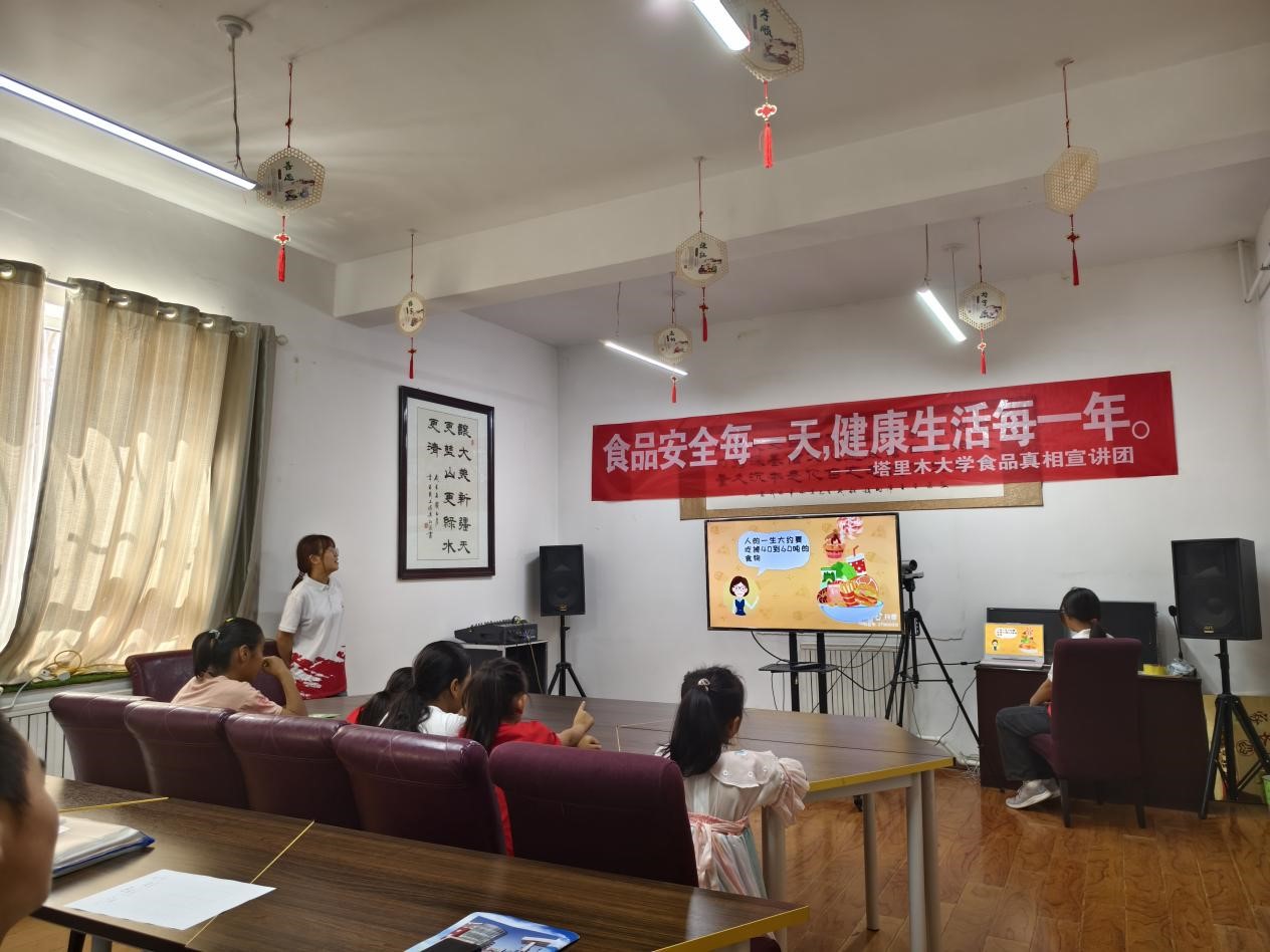 2024年7月8日上午,食品科學與工程學院“食品安全宣講團”與上恰其社區新時代文明實踐站面向社區中小學生開展食品安全宣講活動在庫爾勒市上恰其文苑舉行。宣講活動期間社區負責人王萌萌發表了熱情的講話,強調了活動的重要性與維護現場紀律,并鼓勵小朋友們珍惜學習機會。