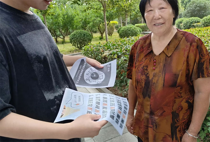 與此同時,形式多樣的健康宣教活動也在同步開展。周秋輝、宋陳杰在社區發放健康知識傳單,為居民答疑并提供個性化用藥指導;孫燦、馬思甜、任世穎則借助抖音平臺,制作并分享合理用藥、疾病預防等主題的科普視頻,有效提升了公眾健康素養。期間,實踐隊還召開會議分享心得、共同探討并撰寫總結報告,且完成了財務結算。