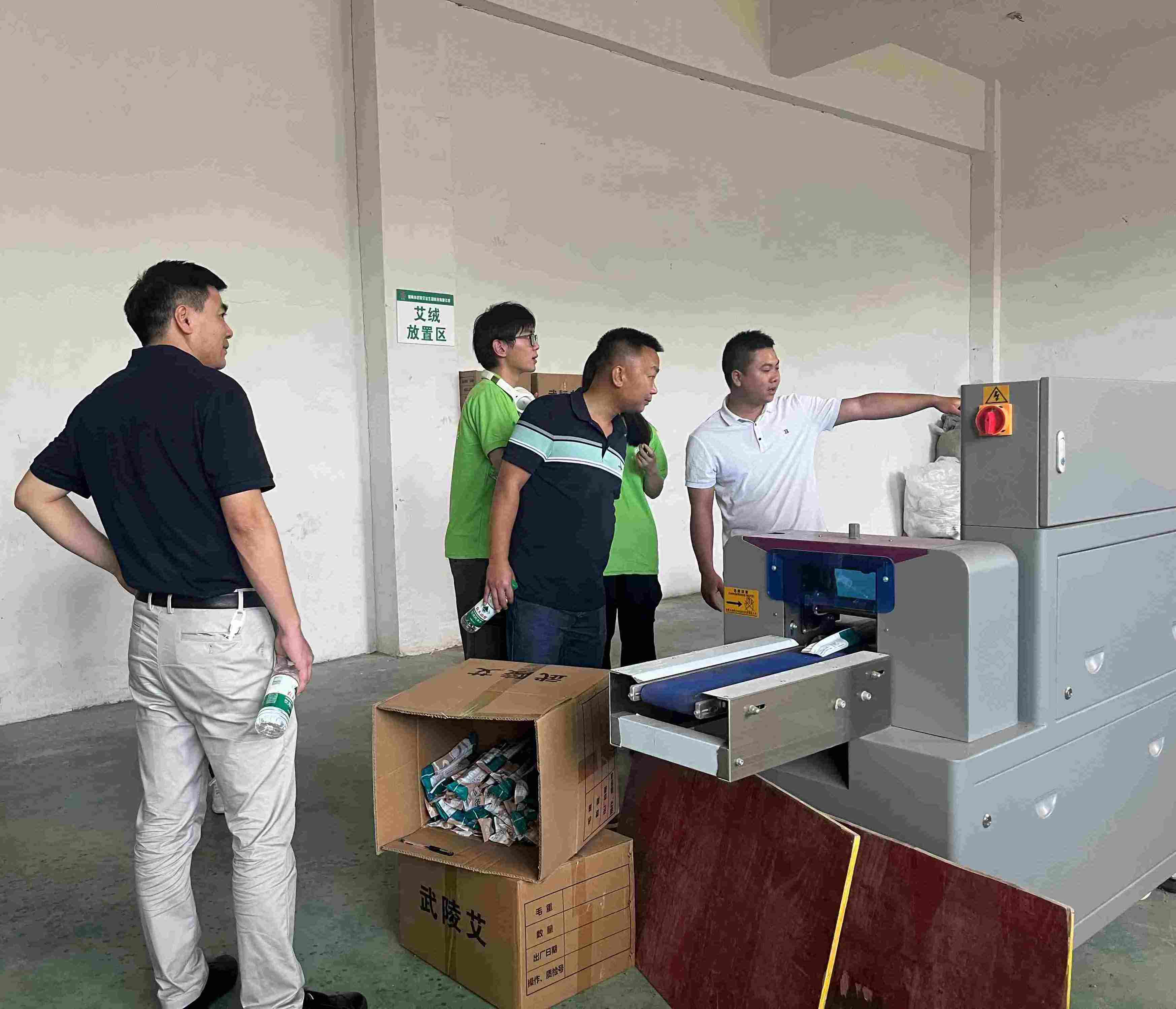 圖為師生跟隨工作人員參觀生產武陵艾的機器