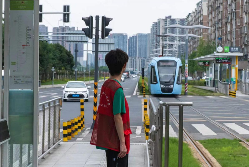 上午,大學生們乘坐體驗了成都有軌電車蓉2號線,其人性化設計讓他們感受到一種全新的出行體驗。寬敞明亮的空間、舒適的座椅、清新的空氣讓人倍感舒心。車廂內配備了先進的空調系統和音響設備,為乘客們營造了一個溫馨舒適的乘車環境。低地板設計人性化,讓老人、小孩和殘疾人都能輕松上下車,真正實現了無障礙出行。