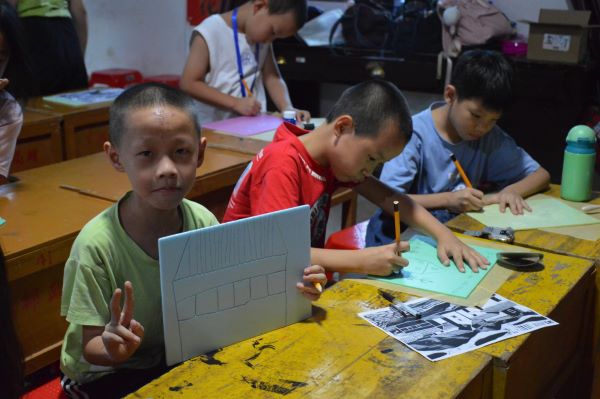 非遺版畫(huà)課程分為理論課與實(shí)踐課,“雙管齊下”深入學(xué)習(xí)。在理論課上,授課老師對(duì)興寧版畫(huà)的發(fā)展歷史進(jìn)行介紹,并引導(dǎo)學(xué)生探究思考版畫(huà)的審美特征與藝術(shù)特點(diǎn)以及創(chuàng)作版畫(huà)的藝術(shù)手法。面對(duì)新穎美觀的版畫(huà),學(xué)生們主動(dòng)積極回答問(wèn)題,思考能力、表達(dá)能力與審美能力得到提高。在實(shí)踐課上,學(xué)生們利用現(xiàn)有的材料充分發(fā)揮想象力,或是繪制家鄉(xiāng)風(fēng)光、或是描畫(huà)梅州火龍,小小的刻板上迸發(fā)出無(wú)限的可能。起稿、刻制、上墨、磨印,每一步,孩子們都傾注了十足的興趣與精力。相信在這堂課程中,華祝學(xué)生不僅了解到興寧版畫(huà)的發(fā)展歷史,而且領(lǐng)略到非遺藝術(shù)的價(jià)值與魅力,增強(qiáng)了保護(hù)本土文化遺產(chǎn)的自覺(jué)性。
