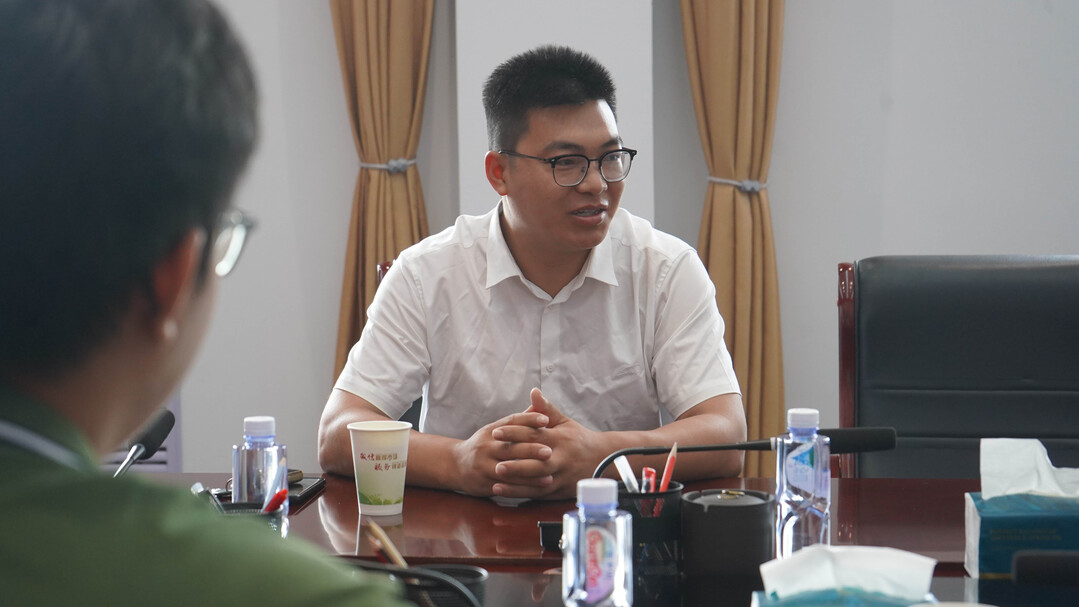 實(shí)踐團(tuán)與縣團(tuán)委書記進(jìn)行座談會(huì)。“沙土地里的春天”社會(huì)實(shí)踐團(tuán)隊(duì)成員 李鈺攝