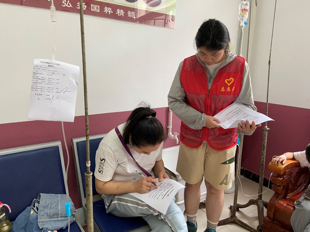 義診活動主要包括高血糖、高血壓、高血脂等多個常規檢查項目。活動現場井然有序,醫路童行的隊員配合醫務人員首先給各位居民登記信息,講解普及關于傳染病、結核病、高血壓以及胃腸鏡等相關的健康知識,發放健康宣傳資料,再為老人們提供免費的一對一、近距離的健康咨詢、門診、身體檢測、健康指導等。