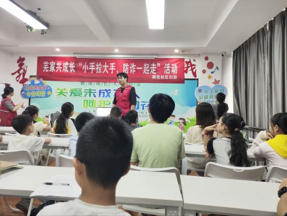 在增強愛國情懷方面,我們通過展開學習輔導,同時也在課堂上講述了關于防詐騙知識的宣傳,通過真實的案例以及PPPT的宣講,成功的讓孩子們學到了防詐騙知識。