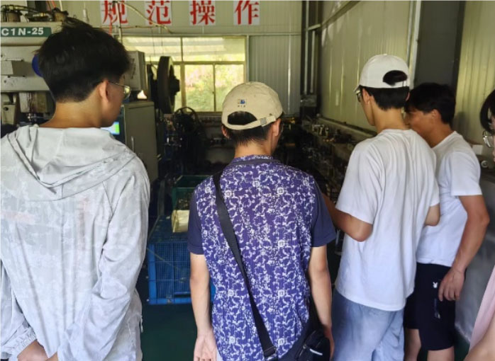 二、探企業(yè)基地,感鄉(xiāng)村戶業(yè)五金行業(yè)是鄉(xiāng)村的重要行業(yè)之一,也是鄉(xiāng)村振興中重點改善與發(fā)展的行業(yè)。實踐團隊于11日下午在迎東配件廠廠長杜老板的帶領下進入萬里學院校企合作基地參觀,詳細了解了金屬配件出廠的全過程,并實際體驗了操作流程。經過杜老板的介紹,大家得知配件機器正在不斷更新,當初需3個人完成的一道繁瑣的工序現在僅需一臺機器即可高效高質地完成,且能自動分離產品與廢渣,杜老板表示,持續(xù)發(fā)展的技術也導致了部分工作崗位的減少。