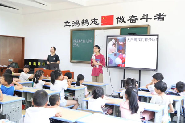 此外,團隊成員還組織了高年級同學進行英語單詞接龍PK,孩子們以小組為單位,興奮地輪流接詞,“cat-table-elephant…”笑聲與掌聲交織,智慧火花四濺,在你來我往之間,鞏固已學單詞,趣學新單詞。一張張笑臉閃耀著童真與青春。