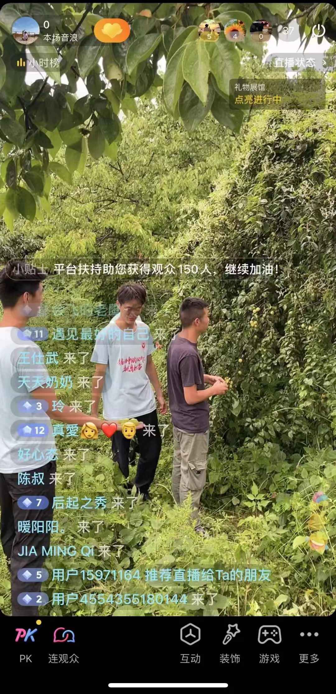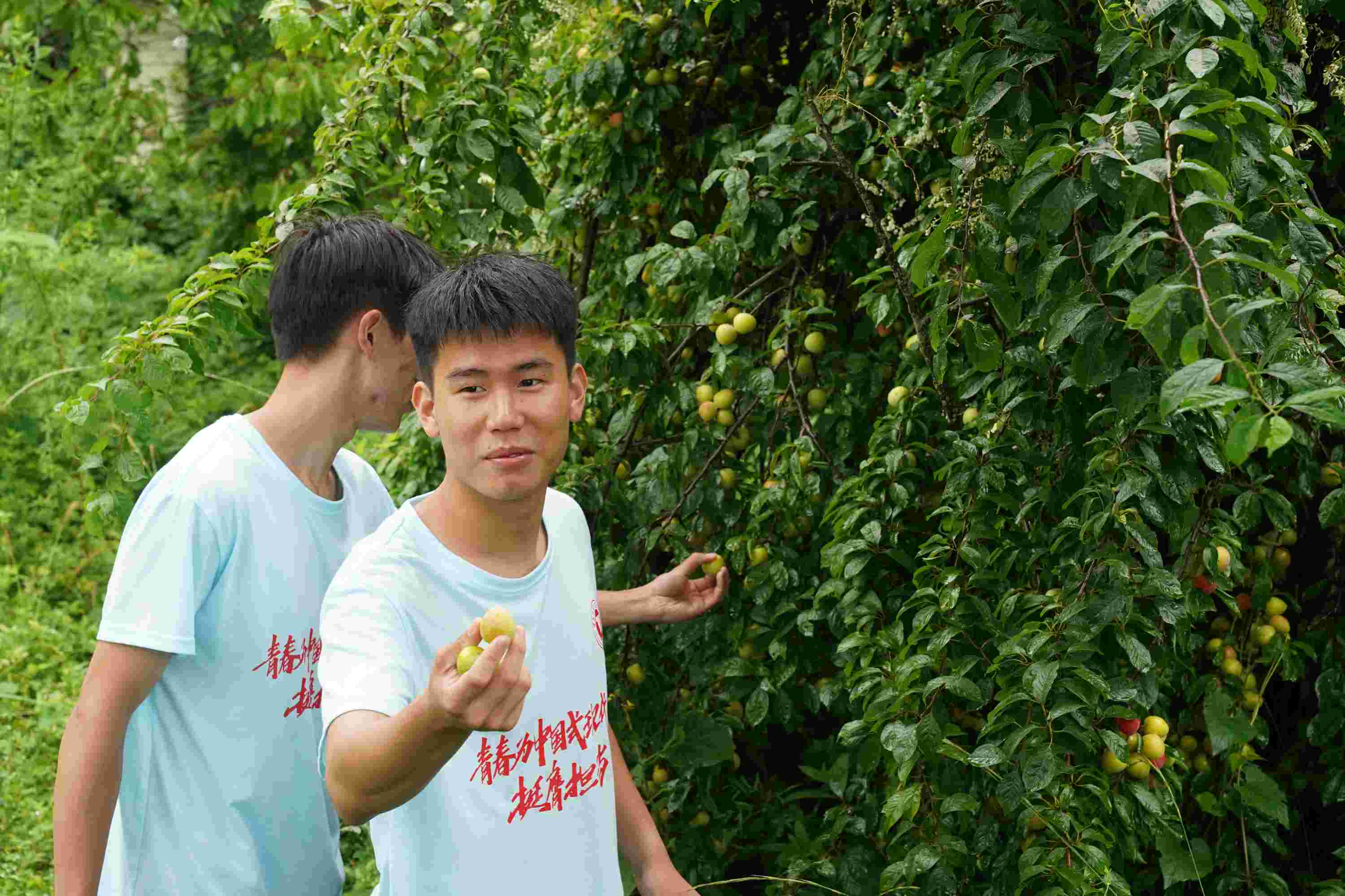 4、7月8日上午,實踐團走進古羌王遺都,來到蘿卜寨村村民果園開展直播帶貨。下午,實踐團來到當地村里種植的果園。