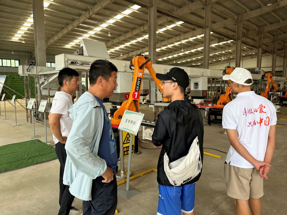 伴隨著21世紀的科技高速發展,如何推動現代農業向機械化乃至自動化轉型,提升農業生產效率成為了一項重大研究課題。基于此背景,團隊成員前往縣農業局牽頭的東海農業發展集團水稻機插育秧工廠進行實地調研。邁入育秧工廠的那一刻,一排排整齊劃一的自動育秧機械手陳列在隊員們眼前。在負責人的介紹下,成員們深入了解了從水稻種子到成品大米的全鏈條生產流程。從種子的浸種拌種,到流水線的播種,軌道車的機械化秧盤輸送,機械栽插,無人機灌溉施肥的智能秧田管理以及最終加工成晶瑩剔透的大米的過程,皆由機器自動完成。通過規模化、專業化運作,該工廠不僅大幅降低了人工成本,220畝的秧田就能夠穩定供應高質量的秧苗,服務周邊大田17000畝,顯著提升了水稻生產的效率與質量,為企業自身帶來了經濟效益,同時也惠及了周邊農戶,實現了共贏。與此同時,成員們還參觀了平明鎮安營村的個體經營的博惠育秧中心,該農機工廠以市場需求為導向提供服務,專注于全面推進水稻生產全程機械化,托管服務覆蓋了從播種到收割的各個環節,大大提高播種質量和出苗率,同時大幅縮短育秧時間,做到了水稻生產的節本增效。公司業務目前已分布江蘇、江西、安徽、上海等多省市,規模仍在不斷發展壯大。作為集體和私營的典型代表,兩家育秧工廠在現代農業技術方面狠下功夫,交相輝映了東海農業現代化的偉大進程和廣闊前景。