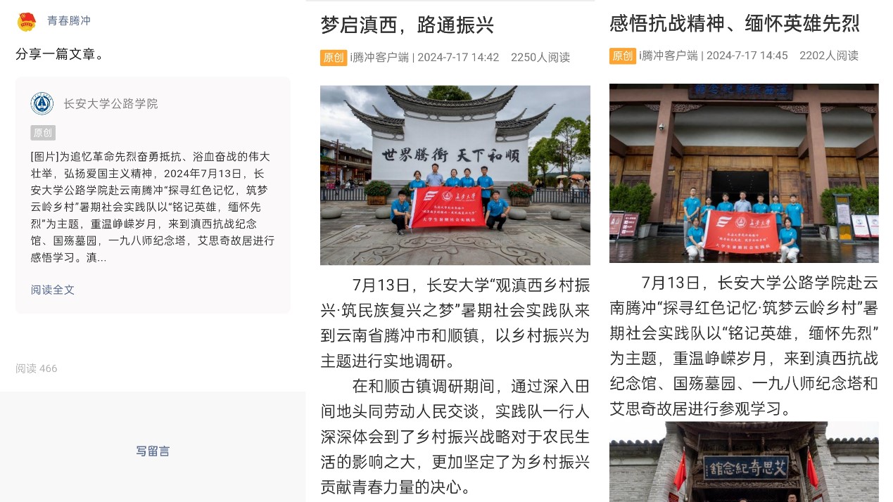 實踐隊“探尋紅色足跡”及“觀滇西鄉村振興”主題活動被騰沖市各單位報道