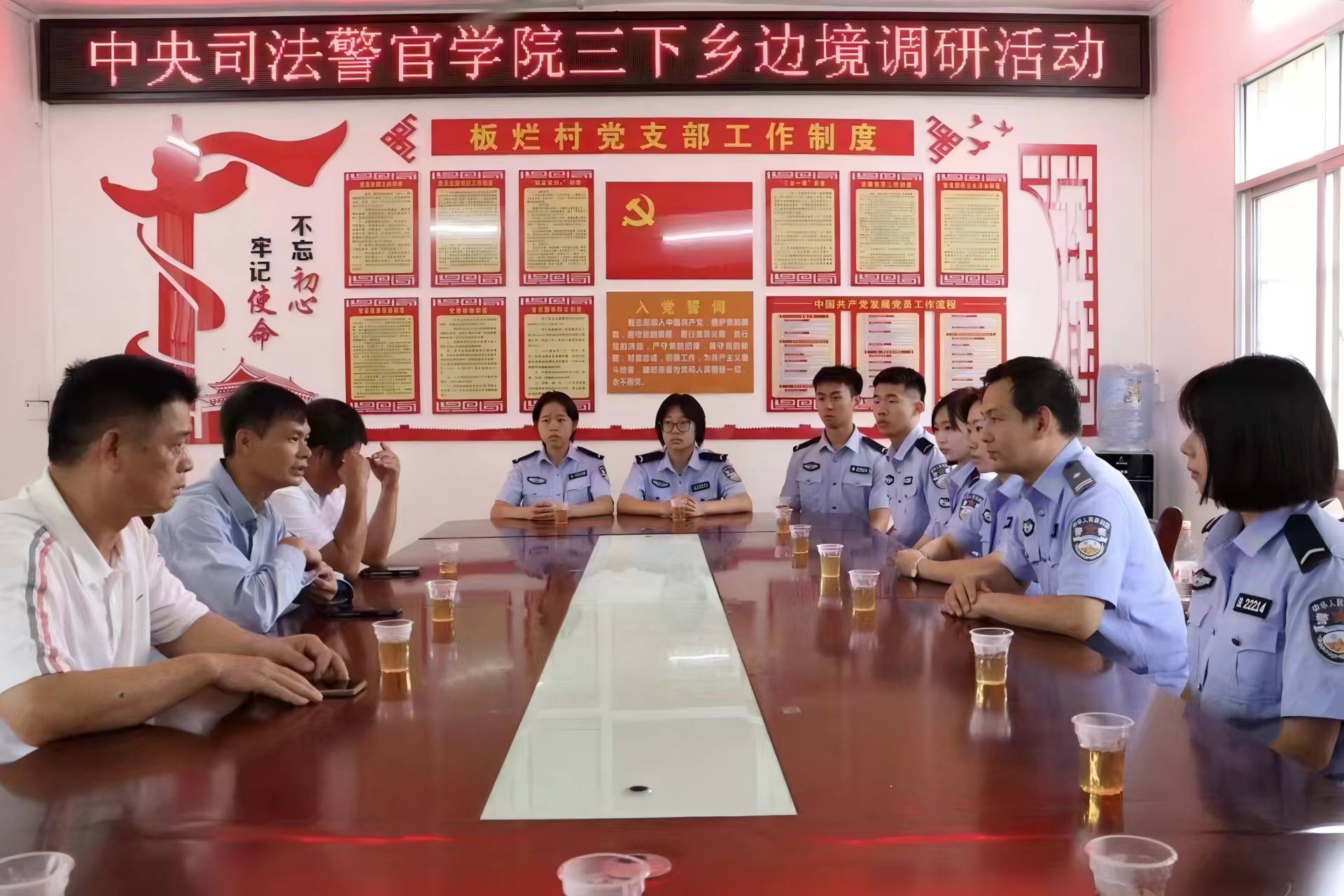 2024年7月28日,中央司法警官學院詰是法學會“華鄉義警”基層實踐隊赴寧明縣桐棉鎮板爛村,入村入戶,向當地村民,對越自衛反擊戰退役老兵,當地小學生,開展普法、采訪紀實和普通話推廣宣講志愿服務活動。板爛村村支書盧海,副主任米多保,副書記黃雄新熱情接待實踐隊一行,并組織交流和學習。