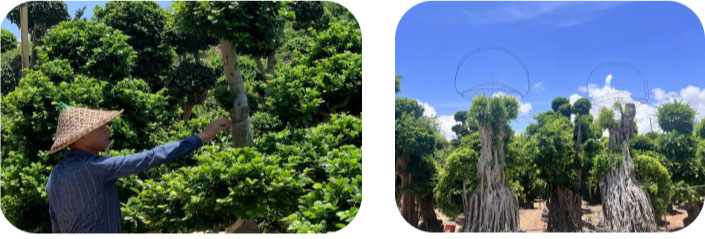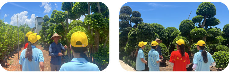 實地調研,知識滿載在李先生的帶領下,實踐隊深入榕樹種植基地,親眼見證了從幼苗到參天大樹的蛻變過程。李先生耐心講解了榕樹生長周期、病蟲害防治技巧及移植注意事項,讓隊員們對榕樹的栽培與養護有了更為直觀和深入的理解。此外,他還分享了自己如何在沒有前人經驗可循的情況下,通過不斷探索與創新,成功培育出多種形態各異的榕樹品種,其堅韌不拔、勇于探索的精神令人欽佩。