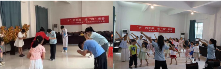 土家擺手舞是土家族最主要的標志性文化形態,2008年被列入第一批國家級非物質文化遺產拓展項目名錄,男女老少,人人會跳,承載著土家人民的信仰和歷史,體現了土家人民勤勞、堅韌、質樸的品質。穿上土家族傳統服飾,聆聽《木葉情歌》的旋律,實踐團成員們與孩子們一起隨著音樂擺動雙手,甩同邊手、走同邊腳,能歌善舞的土家族兒童們自信大方地展示民族舞蹈的獨特魅力,實踐團成員深刻感受到中華民族優秀傳統文化所體現的時代意義。