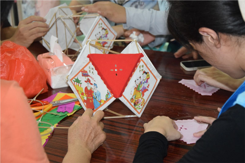 非遺傳承人指導隊員們制作花燈