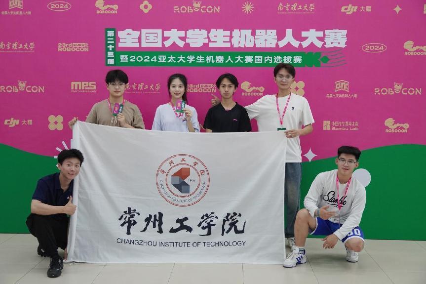 圖為常州工學(xué)院光電Robot團(tuán)隊比賽合影紀(jì)念。 常州工學(xué)院光電Robot團(tuán)隊 供圖